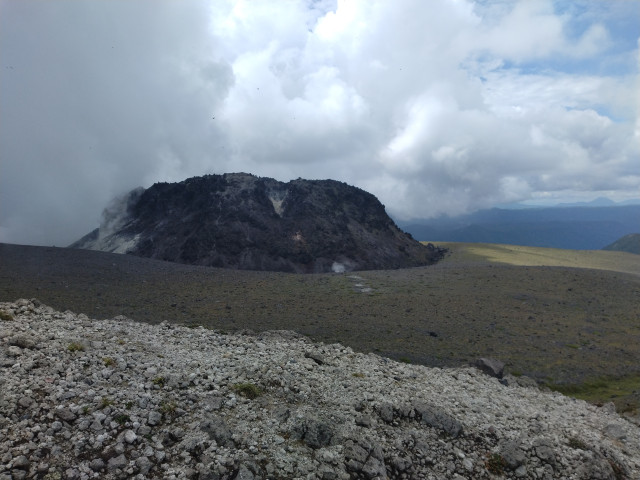 しばらく外輪山の稜線を歩きましたが、標高の高い風通しのよい場所には謎の甲虫の大群が舞っており、ちょっと苦しめられました。刺すわけでもなく何も害はないのですが、まあ、お邪魔虫とでも命名しておきましょう。苦手な方もいるでしょうからあえて写真は載せません。ご安心下さい。
