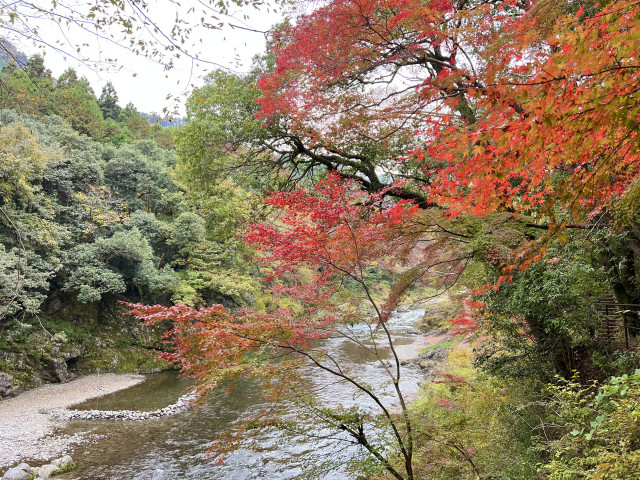 そしたら、ポッケにも穴空いてるんだよねぇ〜って、裏返したポッケを見せて微笑むHさん。穴空いてるポッケに切符を入れてたの〜可愛らしい。ケーブルカーに乗ると、Gさんと私は、運転手さんに話しかけてみて、このケーブルカーは平均勾配が関東一だ〜と教えてもらった。滝本駅から、バスに乗る?バスが来るまで時間があるから歩く〜御岳渓谷までテクテク。御岳渓谷では、多摩川で鉱物を採取してる方、カヌーやSUPを楽しんでる方々を見ながら、紅葉も眺めながら、のんびり歩いていた。時間は、なかなか良い時間になってて、小澤酒造に到着したのは15:30ごろ。大吟醸や新酒やら甘いの辛いのを頂く。Hさん、Gさん、アテを持参してくれてて、Tさんは、クリームチーズのわさび漬けも。お酒たちもだけど、みんなで、テラスに出て、お店の温かいモツ煮、揚げ大豆、おぼろ豆腐etc.も美味しかったなぁ。テラスに出た時は、まだうっすら明るかったけど、17:00ごろになると真っ暗&最後の人たちになってた。みなさん何杯飲んだかな〜おちょこは、ちっちゃいからね。