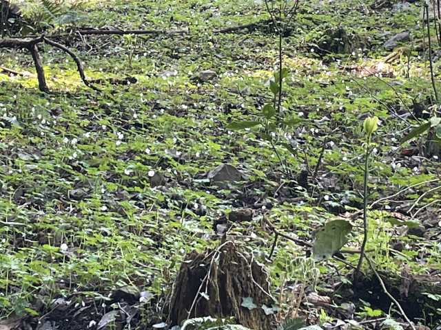 ニリンソウの名前の由来ついて、リーダーの豆知識を披露いただき、「ひとつの細い茎から二つの花が咲いているから」とのことで、よく見てみると、確かに!!