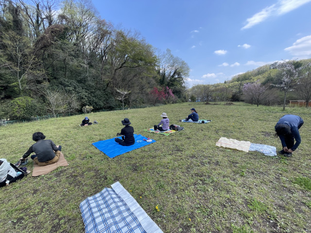 ヨガのあとは、ティータイムとなり、持ち寄ったお菓子とお茶で楽しいトークタイムとなっていました。この辺りで、雲が多くなり少し肌寒さも感じつつ。