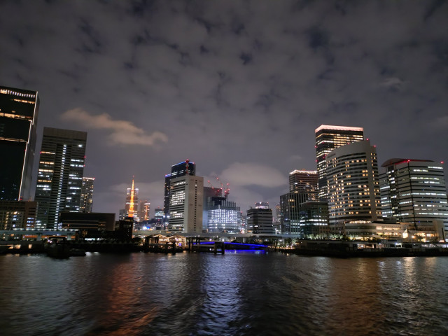 船のデッキに出ると、東京の灯りが遠ざかり、星空と波音の世界に包まれる。