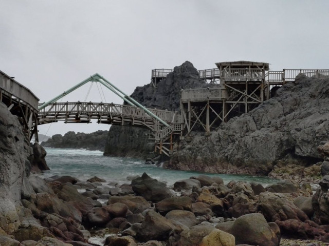 海に沿って延びる木造の遊歩道は風情たっぷりで、神津島ならではの景色を満喫。