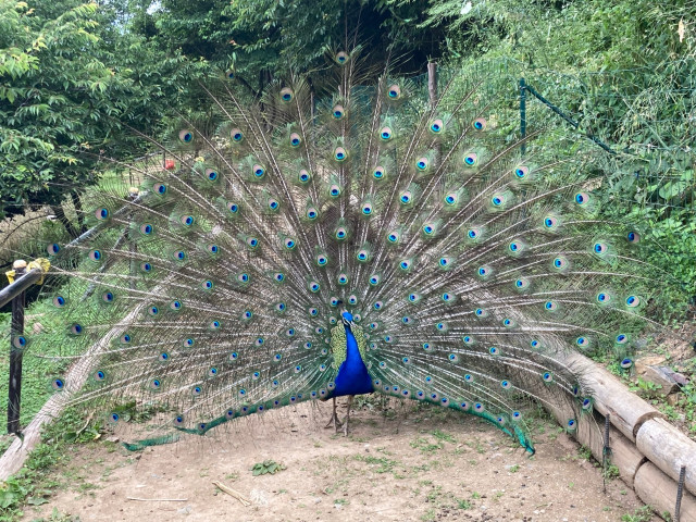 境内では孔雀や山羊が放し飼いされていました。孔雀は人馴れしているせいか、カメラを向けるとモデル並みのランウェイをしてくれます。なかでも、孔雀がヤギに威嚇する姿には圧倒されました。羽音を震わせながら大きく広げていく姿は神々しくて神秘的で美しかったです。