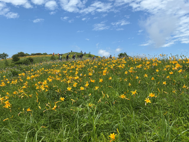 ニッコウキスゲは山頂付近一帯に咲いており、お天気も良かったので写真も映えるし、とても素敵でした。