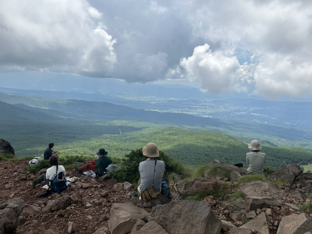 ここ数日は毎日のように夏の上昇気流により雷雨になっているということで、雨の心配からか早めのペースでスタート。日帰り組の3人はおしゃべりしながらもサクサク進みますが、前日入りの3人はすでに3時間ほど歩いたせいか前日の疲れのせいか、少々遅れ気味。