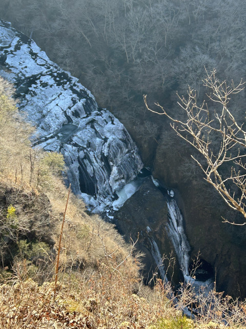 崖になっていたので、各自、びびりながら写真撮影。初めて見た凍った滝は、静的な美しさ、神々しさがありました。
