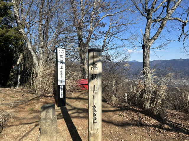 登山口から20分ほどで御前山(484m)に到着。山頂からは上野原の街が見渡せた。