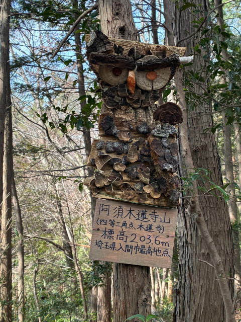 埼玉県入間市の最高地点で、山頂には手作りの可愛い看板がありました。