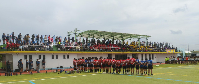 本日5月5日(日)水戸ツインフィールドにて2024太陽生命カップ茨城県予選「南茨城RS VS 水戸日立RS」が実施されました。これまで県大会では見られなかった光景、両チームの応援でスタンドは満席に。県内中学生ラグビーの充実ぶりを実感しました。ゲームは14対14で両チーム優勝。どちらの選手も力を出し切った好ゲームでした。抽選の結果、東日本大会の茨城県代表には水戸日立RSが決定しました。 南茨城の3年生にとっては単独チームでの最初で最後の公式戦となってしまいましたが次の目標に向かって頑張ってほしいです。