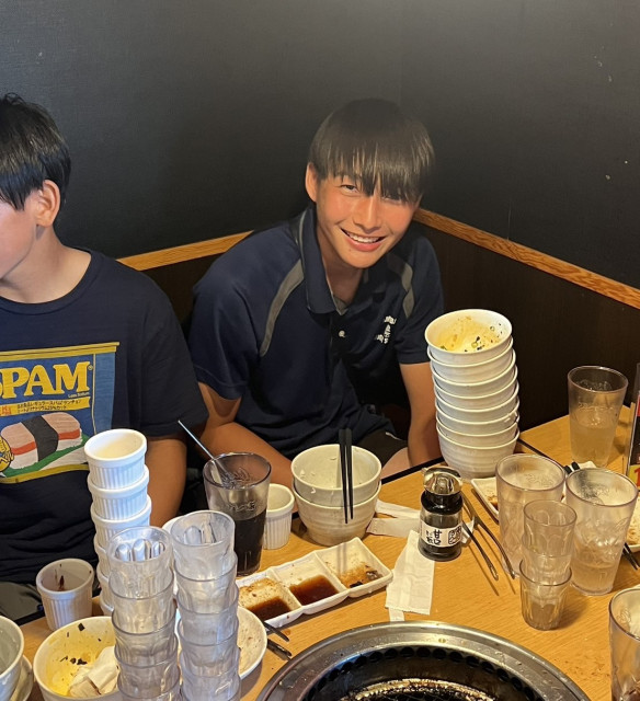 たまごかけご飯おかわり7杯?たしかやよい軒では8杯?9杯食べたとか?N家のエンゲル係数は?ラガーマン4人いる家族の食費ってどのくらいなのでしょう?そしてその隣、柔道県大会チャンピオンの前にはおびただしい量のデザートの器が・・・1人で食べたわけではないと思いたいですが、無差別級に転向か?