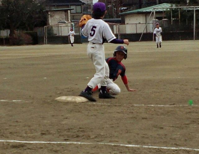 ファーストNちゃんがゴロを弾いた所をセカンドT馬君が1塁まで走り込みナイスカバー!