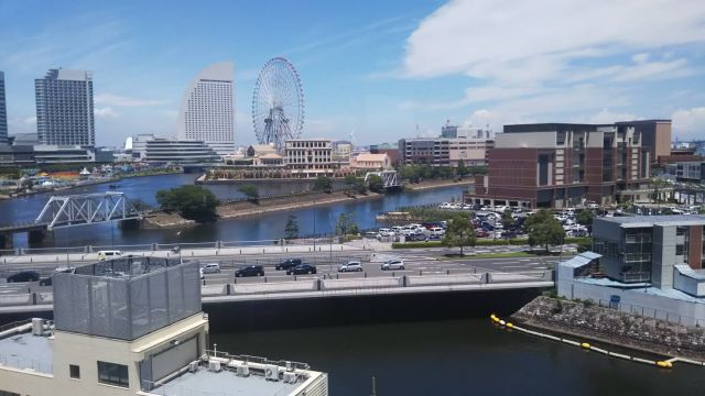 大きな窓が一面張り巡らされた明るい店内。みなとみらいの景色を眺めながら、優雅にお食事しました。