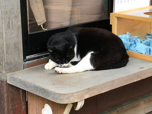 そして、そして、おみくじのそばでお昼寝している猫を発見!