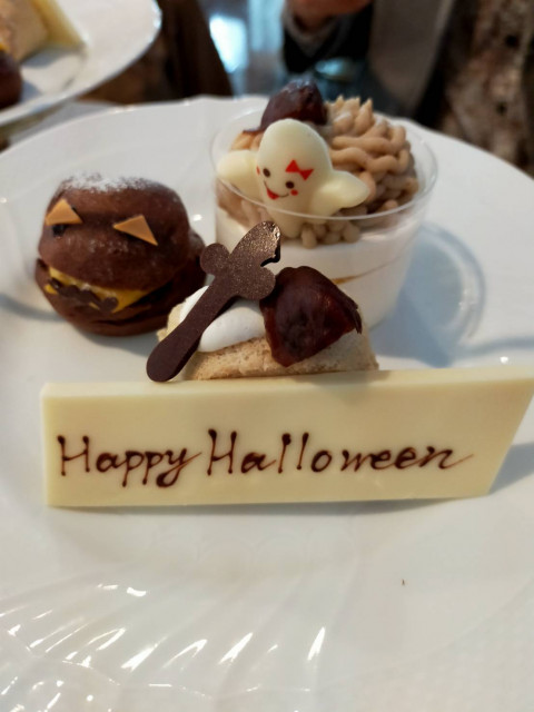 可愛いいお化けのスイーツがたくさん載ったお皿に「HAPPY HALLOWEEN」と書いたプレートも載せて頂き、気分も上がりましたねー!