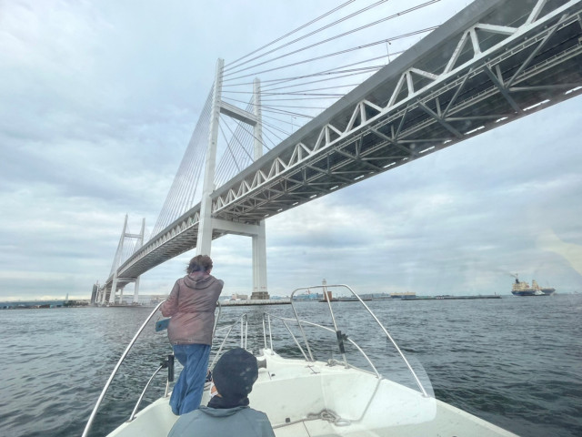 東神奈川駅近くのマリーナから、モーターボートをレンタルして出航。はっちゃん自ら操縦し、みなとみらいやベイブリッジ、大岡川まで、ぐるっと約2時間クルージングしました。