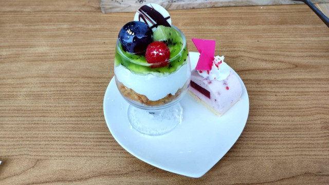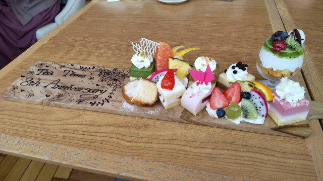 スイーツプレートには「Tea Time 8th Anniversary」と書いて頂きました。