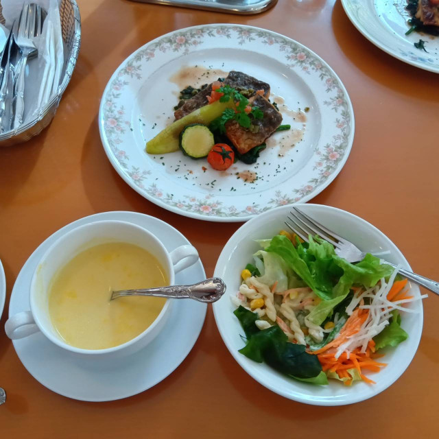 スープ、ドリンクバー、サラダバーがついて1350円也。紅茶もあり、何杯もお代わりして飲みました〜。