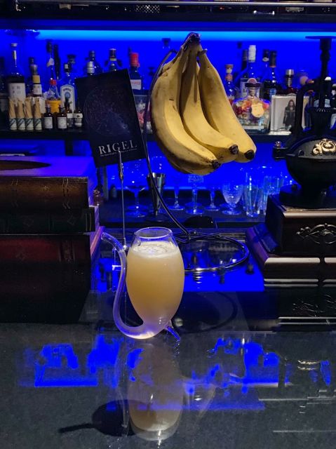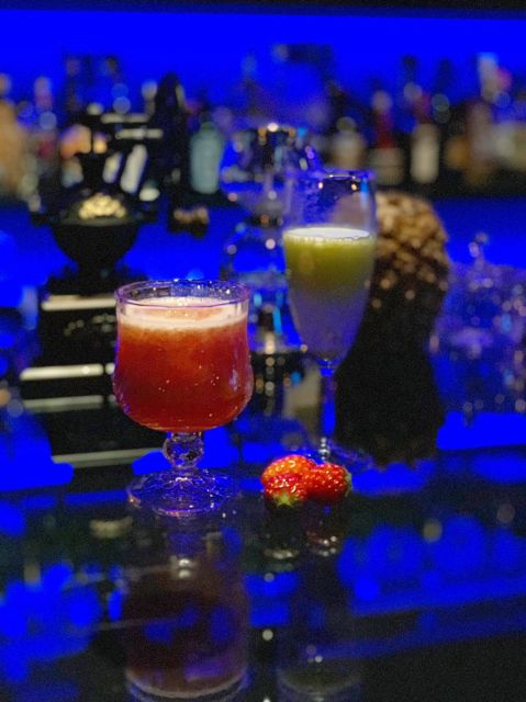 フルーツカクテルが評判のお店で、イチゴ、マスカット、みかん、バナナ、ベリー系など、みんなでいろいろ頂きました。どれもフレッシュで、とっても美味しかったです。勿論、スタンダードカクテルも作って下さいました。