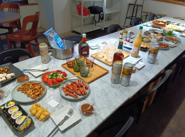 みんなで買い出しして、簡単な調理をし、持ち寄ったものも並べ、豪勢な食卓となりましたね。