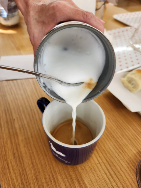 先週に引き続き、エスプレッソ系のコーヒーを、臼井さんから借用した「ネスプレッソマシン」を使用して、カフェラテの試飲をして頂きました。コーヒーがマイルドな味となり”飲みやすい”と大変好評を頂きました。