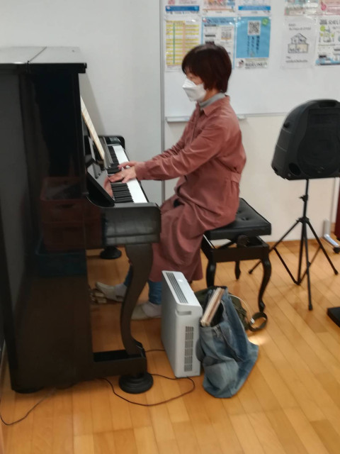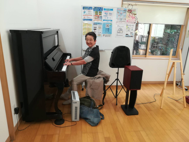 その後の残り時間に、お客様の「金久保さんの奥様(現役ピアノ教室講師)」がポピュラーな曲を演奏してくださり、生演奏を楽しませていただきました。さらに、バリスタの一員である、臼井さんの奥様(こちらもピアノ講師)からの提案で、ご本人の伴奏で「きよしこの夜」を参加者一同で合唱して、雰囲気が大いに盛り上がったエンディングとなりました。