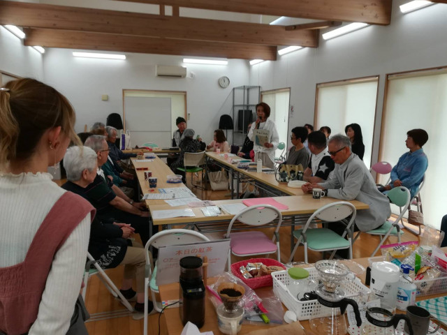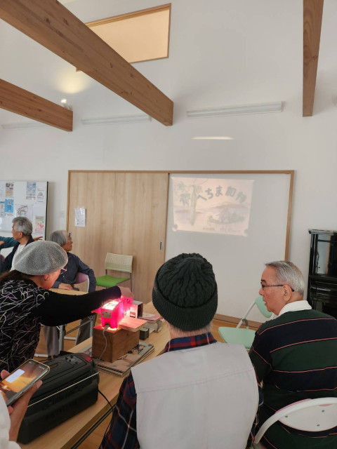 今回のミニミニイベントは、1丁目在住の「高橋亥久夫さん」の大楠やバンクーバー在住に関するトークと、長坂にお住まいの「志田良子さん」のスライドによる”ヘチマ加持の寺・円乗院”の古事紹介でした。