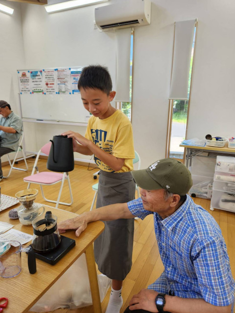 本日のコーヒークラブには、バリスタ担当の「村岡さん」のお子さんが、お手伝いに参加してくれました。コーヒー抽出作業体験やお客様へのコーヒー給仕などを手助けしてくれました。こちらも助かりましたが、本人も貴重な体験となったことと思います。有り難うございました。