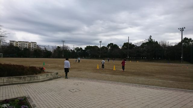鳥かごのあとリフティング対決やゴールの上のバーに当てる