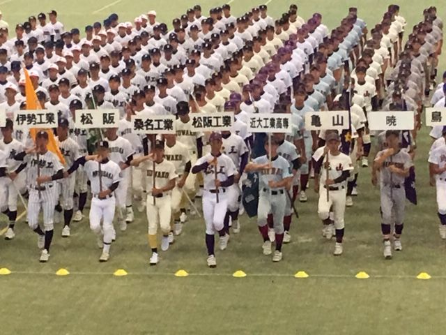 白山高校を先頭に気持ちの入った各校の行進。選手代表として、津工業主将が大きな声で行った選手宣誓。記憶に残る素晴らしい開会式でした。