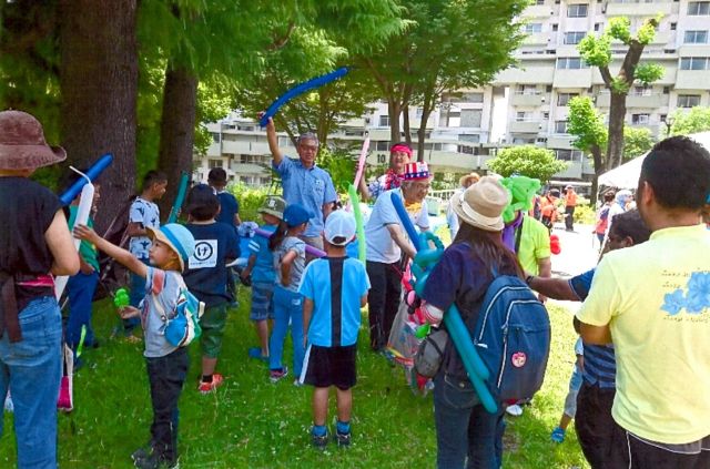 南神大寺団地でのバルーンパフォーマンス活動の様子です。