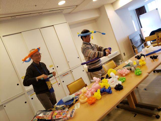 障害を持つ子供達の自主訓練会の保護者と兄弟が参加したクリスマス会に招かれ、参加者からの沢山のリクエストに応じ、バルーンアートのパフォーマンスを披露しました。