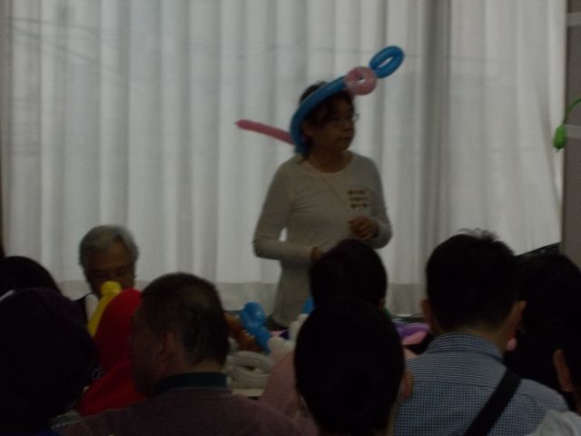 知的障害のある施設に通っている方々に、バルーンアートを楽しんで頂くため、作り方の説明を交えながら、色々なバルーンアートを作成・配布しました。一つ出来上がるたびに、参加者から歓声が沸き起こり。大変喜んで頂きました。