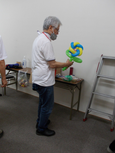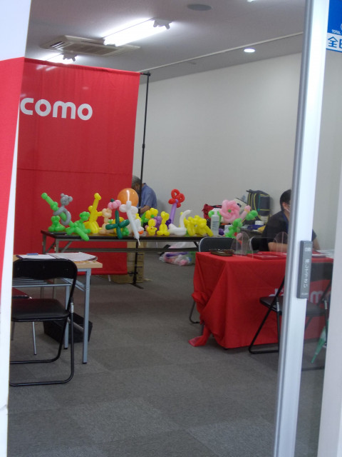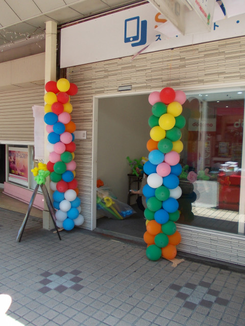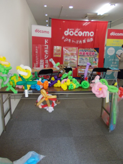 部員が、知人から「ドコモ大倉山店の出張販売・相談会の開催に当たり、展示用及び来場者への配布用としてのバルーン作品の製作」を依頼されました。