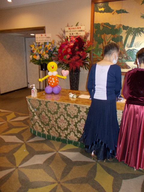 当倶楽部初めての試みでしたが、「大野ダンススクール創立20・21周年記念ダンスパーティー」の会場入口装飾を依頼され、ベテランメンバーを中心に、綺麗に飾り付けができ、各部員も新しい技術の習得ができたと、喜んでいました。