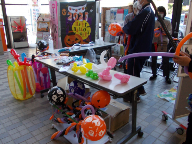 毎年(昨年はコロナで未実施)10月の最終土曜日に開催されている、我倶楽部に練習会場を提供して頂いている、横浜市立うらしま荘のハロウィンパーティに招かれ、来場者へバルーンアートをプレゼントしました。