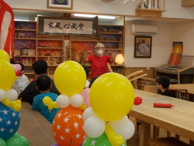 コロナ前に続き、また、お招き頂きました。 今回も、元気な子供達の大きな声援を受け、バルーンパフォーマンスのほか、楽器演奏や読み聞かせなど披露しました。