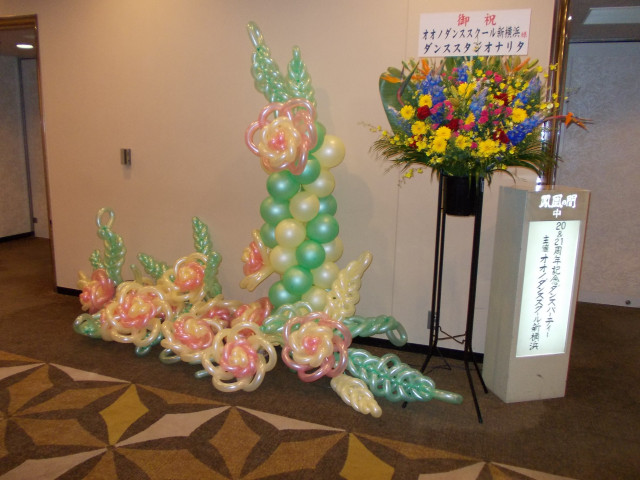 当倶楽部初めての試みでしたが、「大野ダンススクール創立20・21周年記念ダンスパーティー」の会場入口装飾を依頼され、ベテランメンバーを中心に、綺麗に飾り付けができ、各部員も新しい技術の習得ができたと、喜んでいました。