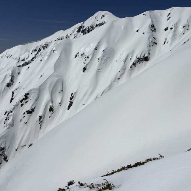 上から見ていると杓子平から滑ってるパーティが見え、杓子平は広くなだらかですごく良さそうでした。