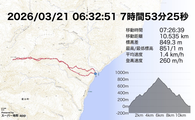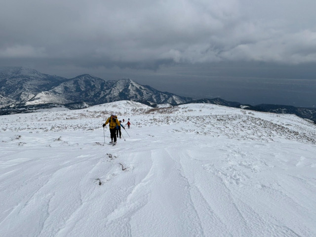 熊の気配、急斜面トラバース、藪の突破、そして流氷を望む滑走。知床らしい緊張と美しさが交互に訪れる山行だった。隊長の判断に助けられながら、未開の谷筋ルートを滑る冒険も味わえ、充実した一日となった。