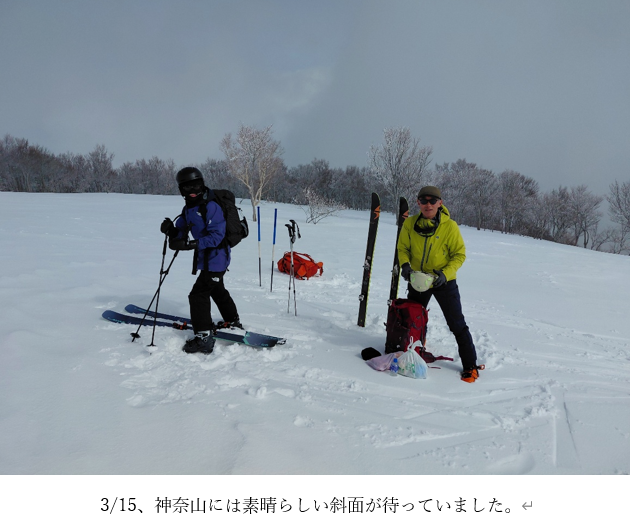 まずは一段目、非常によく走るパウダーで楽しい。本隊とともに外輪山に残留した守谷リーダーが滑走動画をとってくださった。