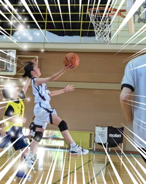 レイアップシュートは高く飛ぶほどボールとリングの距離が近くなります。