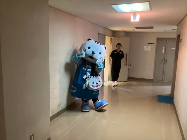 会場でプロバスケチーム「ハンナリーズ」のマスコット『はんニャリン』を発見!!