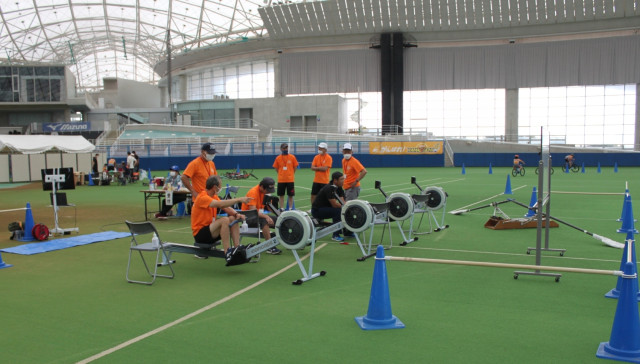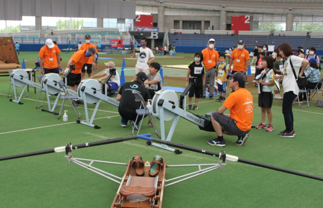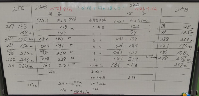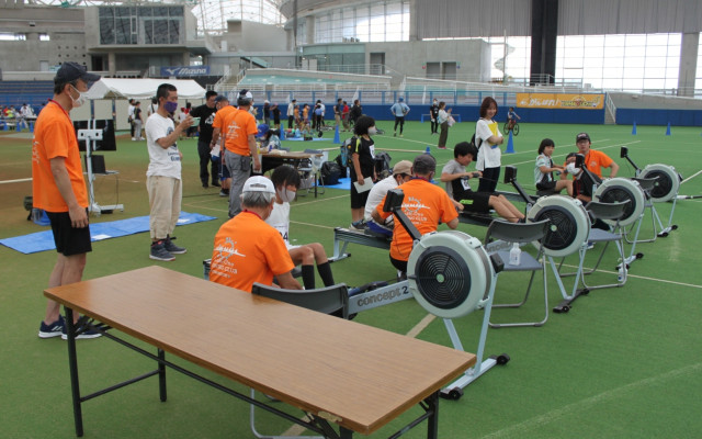 エルゴによる漕ぎ方の練習をし、1分間のタイムトライアルに挑戦しました。