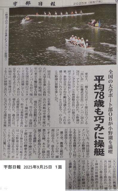 「良い会」が小野湖でローイングを満喫