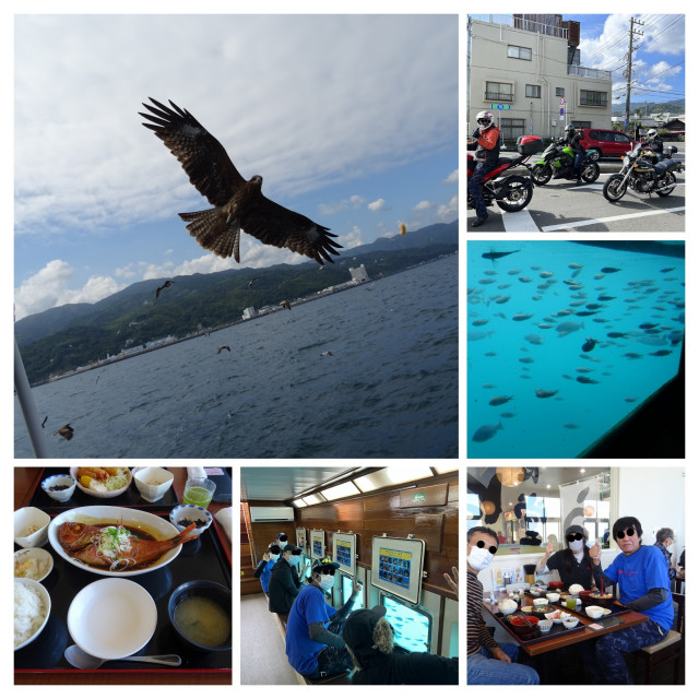 遊覧船の中から、海の中の魚を見たり、カモメや鳶に餌をあげて楽しんだ後は、昼食で海の幸をたらふく堪能しました。