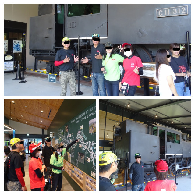 サンドイッチや季節の果物を皆で頬張り、大井川上流へ向けての腹ごしらえを済ましたあと、大井川鐵道 門出駅に隣接する同じ施設内に展示してある蒸気機関車 C11型を見学、センスある施設の作りについつい長居してしまいました。