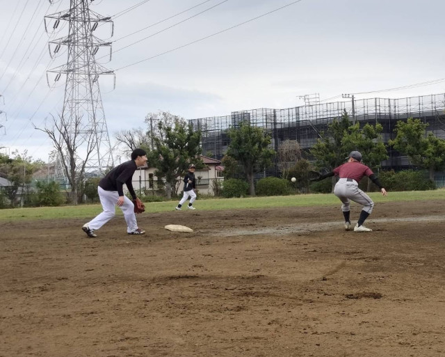 基本練習として内野ノックとセットで必ずゲッツーの練習も行っています。