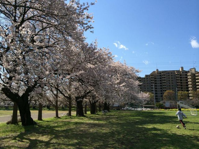 今日は郵政グラウンドで練習。いつの間にか桜が咲いてる。