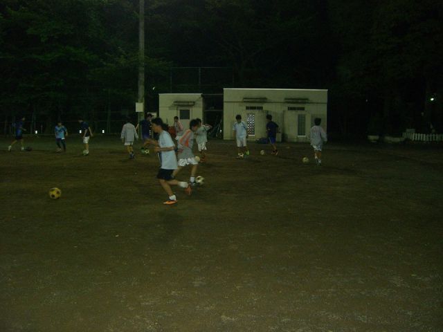 基礎練のあと、リフティング1000回、三人一組インサイド/インステップ/ヘッド、インサイド4人回し100回、最後にミニゲーム。