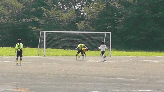 前半4-0。開始2分でシュンがドリブルで抜け出してゴールを決めた。なかなかボールがポゼッションしきれない感じが続いたが、13分コーナーキックをテツがダイレクトインサイドで追加点ゲット。24分アッキーがレンからのスルーパスを受けゴール前で追加点、さらに終了間際に再びアッキー、コースが空いたところをロングシュート一閃!